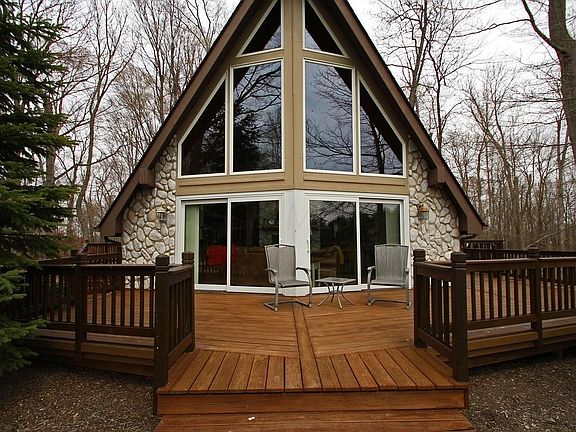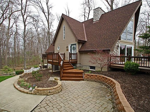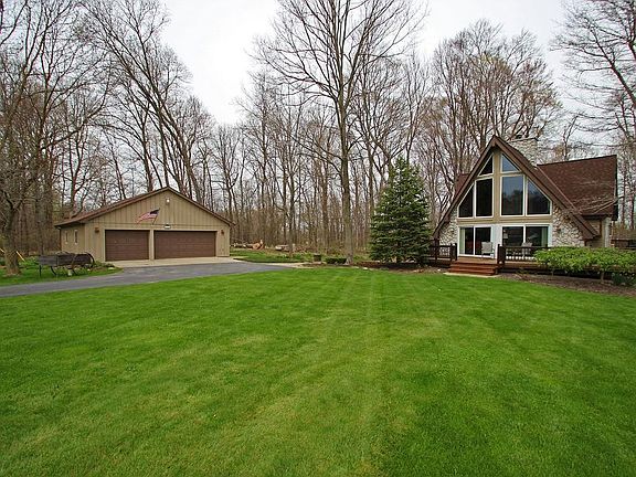 A-frame home on 7.48 acres w/3 car garage, 4 stall horse barn w/fenced in pasture, fenced in garden w/raised beds, 15x30 home gym or office, wooded acreage w/trails, completely remodeled and finished walk out basement and upstairs. Great commute location and private setting in the back of a shared gravel drive.