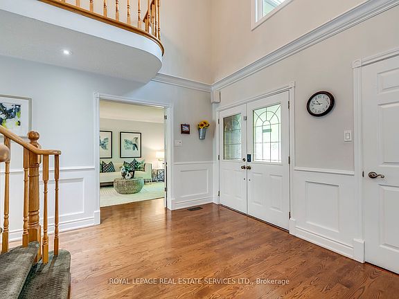 Meticulously maintained executive home on a 50 x 131 lot backing onto Indian Ridge Trail, offering over 5,100 sq. ft. of living space with approx. 3,400 sq. ft. above grade plus a 1,764 sq. ft. finished basement; highlights include 4+2 bedrooms, 6 bathrooms, hardwood floors, crown moulding, wainscoting, pot lights, French doors, two fireplaces, a main floor office, and an eat-in kitchen with breakfast bar, pantry wall, built-in desk, and walk-out to a covered deck and heated pool, while upstairs features 3 full baths including a spacious primary retreat with walk-in closet and 4-pc ensuite, and the basement provides two accessory apartments with kitchens, 3-pc baths, and separate entries, all overlooking a Muskoka-like backyard oasis. Recent upgrades include roof (2020), all triple-pane windows (2023), spray-foam insulation (2024), interior freshly painted, furnace & water tank (2018), new fence (2025), basement carpet (2018/2025), and some updated pool equipment.
