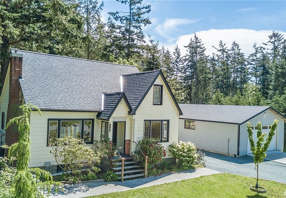 Price Drop! Come visit this beautifully restored 3 bedroom,1.5 bath historical charmer.2532 sq ft including a large finished basement.This exquisite home sits on .97 acres and is a short walk to West Beach. Orig hdwd floors,trim,arches,more,remod kit,recycled glass c-tops,new appls. Sep detached lg shop/garage, green house/garden area, bottle wall,new roof, septic pumped, private master bdrm w/balcony top level, magical beautiful grounds, Seattle Barge and most of all privacy on Whidbey Island.