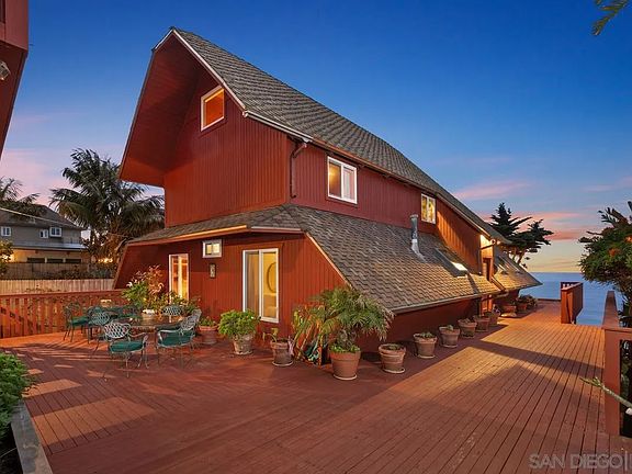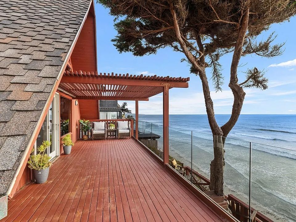 Magnificent oceanfront home with a private staircase leading straight down to the beach. This is truly a magical home where you can enjoy panoramic sunsets from your deck or your own beach. 6 bedrooms, classical A-Frame home in the highly sought after neighborhood of Leucadia. Walking distance to exclusive restaurants, stores and world famous surf breaks. This rare home also offers a place for the whole family - multi-generational living or live in one house and rent out the other. See Supplement.