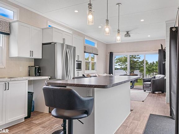 Luxurious modular home in the highly desirable Redstone On Rosseau community. This stunning property offers an exquisite living experience with its prime location and a host of desirable features. As you step into the spacious living room, you'll be greeted by a captivating shiplap propane fireplace and convenient walkout that offers an unobstructed view of the picturesque Lake Rosseau. The kitchen is a culinary enthusiast's dream, ft. s/s appliances, an island, and elegant shaker-style cabinetry. This beautiful home comprises 2 beds, including a primary that boasts a 3-piece ensuite. The additional 3-piece bath caters to the needs of both residents and guests, ensuring convenience and comfort for all. Enjoy access to a range of park amenities, including docking facilities, swimming areas, and scenic trails. Whether you enjoy boating, swimming, or exploring nature, this community has something for everyone.