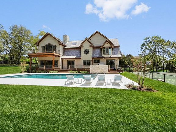 Bridgehampton Gambrel with Private Padel Court The Ultimate Hamptons Lifestyle. This beautifully landscaped Gambrel sits on a private 1+/- acre lot, offering 5,000+/- sq. ft. of luxury living space and a brand-new private Padel court. The home features a dramatic double-height living room, a gourmet chef's kitchen, and five spacious bedrooms, including a grand upstairs master suite and two convenient first-floor guest rooms. Outdoor Paradise. Designed for resort-style living, the grounds feature a pristine pool, an expansive entertaining deck, and professional-grade Padel facilities-all framed by lush, mature landscaping for ultimate privacy. Unbeatable Location. Ideally situated just minutes from the vibrant villages of Bridgehampton, Southampton, and Sag Harbor, and within easy reach of world-renowned ocean beaches.