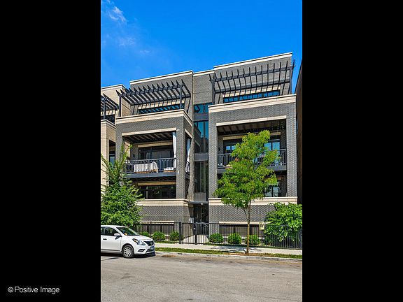 Introducing an extra-wide, 3-bedroom, 2.1 bathroom duplex built and designed with distinction by award-winning Noah Properties in collaboration with Axios Architects. This modern masterpiece combines architectural sophistication with high-end functionality, offering the space, finishes, and lifestyle of a single-family home at a fraction of the price. This residence includes one-car garage parking with a dedicated level 2 EV charging outlet (14-50) and a spacious garage roof deck enhanced with a custom pergola-the perfect setting for outdoor living, dining, or entertaining. Two additional covered balconies (front and rear) further extend the home's private outdoor space. The open-concept main level is filled with natural light and showcases a sleek, contemporary design. The chef's kitchen features custom-designed cabinetry, waterfall quartz countertops, designer fixtures, and a premium Bosch appliance suite. The main level also includes the formal living and dining area with a fireplace, powder room, family room with a second fireplace and hardwood floors throughout. On the lower level, enjoy radiant heated floors throughout. The primary suite is a retreat of its own with two walk-in closets and a spa-inspired bath that includes a double vanity, freestanding soaking tub, steam shower, heated floors, and designer tile selections. Additional bedrooms are generously sized with custom closet build outs and share access to a thoughtfully designed bathroom with high-end finishes. The radiant-heated lower level offers a second fireplace, media/family room, and versatile space for work or play. Every detail reflects elevated craftsmanship, from wide-plank flooring, sophisticated lighting, high-end European casement windows, and custom millwork throughout. Ideally located in vibrant Noble Square/East Village, this home offers easy access to the expressway, Blue Line, restaurants, cafes, and nightlife. Unprecedented in style, design, and scale-this home delivers the feel of a single-family residence with modern convenience and low-maintenance living.