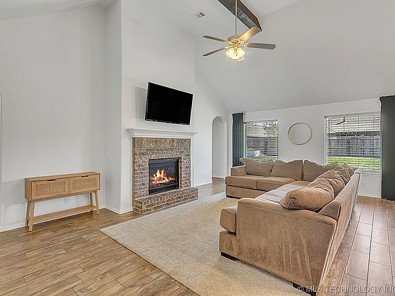 You don’t want to miss this adorable 3-bedroom 2 bath home in a great location! Located close to Hwy 75 and the Creek turnpike, this newer construction home offers beautiful tile wood floors, granite countertops and stainless-steel appliances in the kitchen, a beautiful bricked fireplace in the living room, and a large backyard! Schedule your showing!
