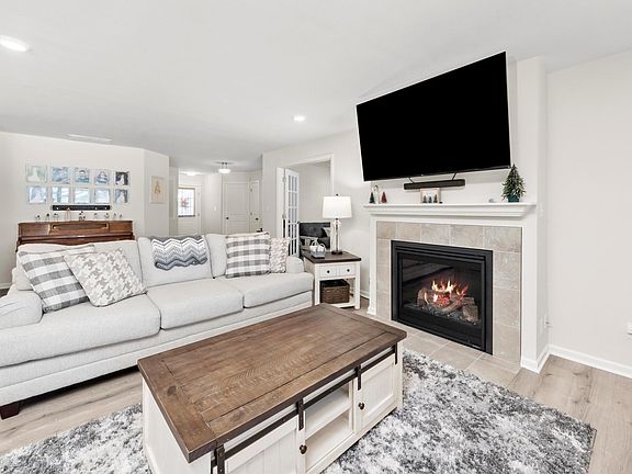 MINT CONDITION PAIRED VILLA in Centennial Estates - SHOWS LIKE A MODEL!! Better than new construction, built in 2023 with all the extra bells & whistles. The Brighton maintenance free floor plan is one of the most popular models; featuring 2 bedrooms, 2 full bathrooms, PLUS a flex room/office AND a bump-out 4-seasons SUN ROOM!! French doors frame the bonus flex room; which makes a great home office, den, or even a 3rd bedroom if needed! Gorgeous LVP flooring throughout the open concept living room/kitchen/dining area; featuring an OVERSIZED island with bartop seating, granite counters & stainless steel appliance package. The primary suite features a MASSIVE walk in closet, double sinks & walk in shower. Updated modern fixtures & window treatments throughout, including new ceiling fans w/ remotes. Cozy gas log fireplace at the touch of a switch. Convenient finished laundry room just off the kitchen; washer/dryer & water softener included. Pull down attic for extra storage. Cozy back patio perfect for grilling out or relaxing. Low HOA fee includes lawn, snow, landscaping & front/back irrigation. Don't wait long!