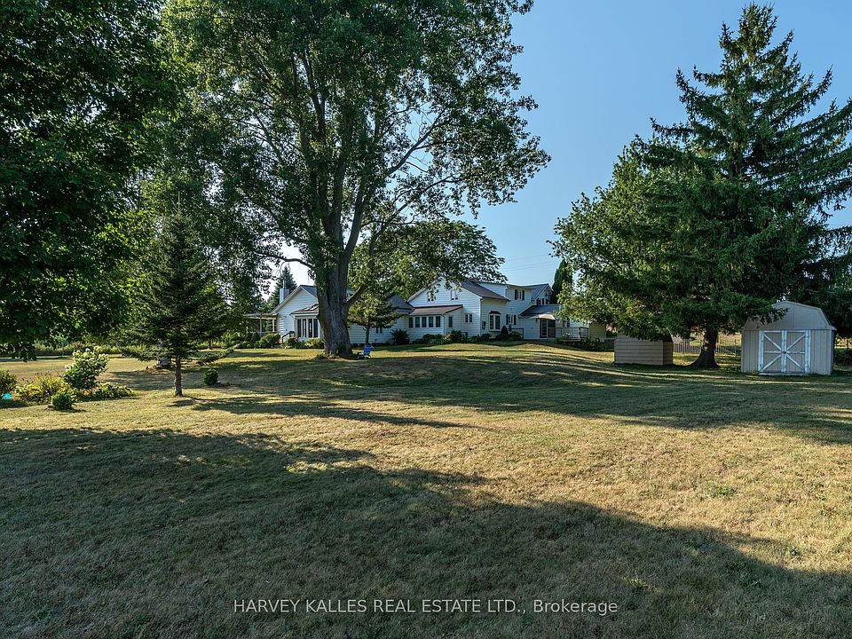 Welcome to a truly special century home, perfectly tucked between Picton and Bloomfield in the heart of Prince Edward County. This property isn't just a home, it's a lifestyle, calling to those who dream of multi-generational living, envision a private retreat for visiting friends and family, or see the potential of income generation or a charming bed & breakfast. Here, possibilities bloom as beautifully as the gardens! Step inside the main home and you'll find warmth and character in every corner. The ground floor is filled with inviting living spaces; whether you're gathered in the family room, relaxing in the den, spending time in the living or sitting rooms, or sharing meals in the kitchen and dining room, there's a place for every moment. Two staircases lead you upstairs to six bedrooms, three with ensuite baths. Pine accents, rich wood tones, large windows, and glowing gas fireplaces create an atmosphere of timeless comfort and charm. The magic continues with a completely separate ~1200 sq ft in-law suite. Thoughtfully designed for both privacy and connection, this one-bedroom plus den retreat features airy, open-concept living spaces, vaulted ceilings, skylights that flood the rooms with sunshine, and a wrap-around deck perfect for morning coffee or evening unwinds. Outside, the property is nothing short of enchanting. Wander through the fenced courtyard where perennials bloom beside a gentle water fountain, discover vibrant garden beds at every turn, and take in the ever-changing colour and fragrance through the seasons. Mature trees frame the manicured grounds, and beyond, open farm fields provide a serene and pastoral backdrop. A double detached garage offers workshop or storage space along with parking, and a secondary front pad parking area provides extra space for vehicles. This is more than a home, it's a place where stories are waiting to be written, where family and friends can gather, and where the beauty of the County surrounds you at every turn.
