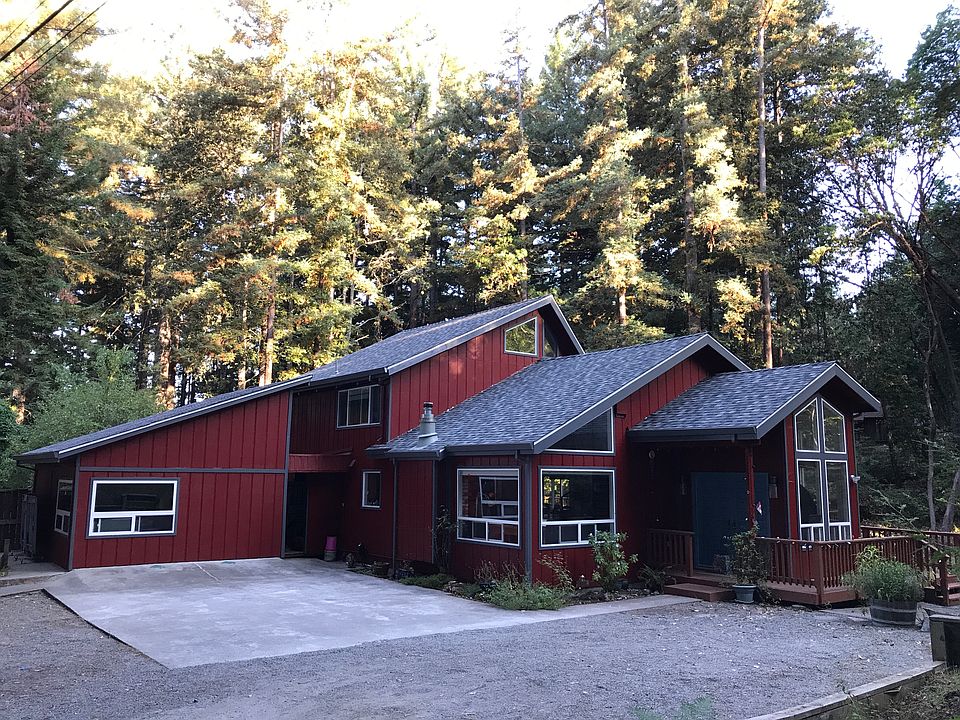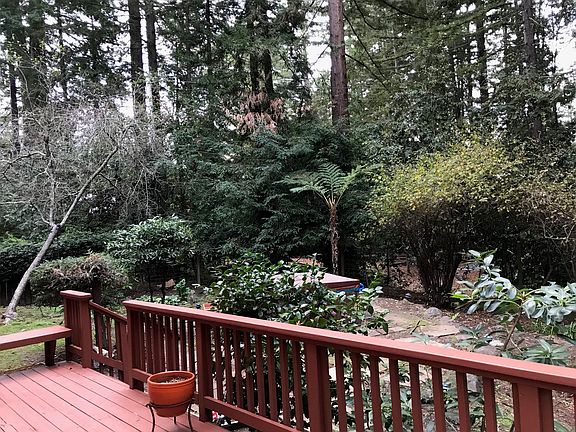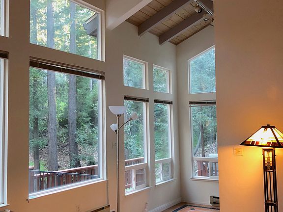 Charm & character abound! Double doors open to the bright entryway & great room, boasting a spacious open floor plan with soaring vaulted ceilings & walls of windows framing majestic redwood views. Remodeled kitchen with granite counter tops, open to the living rm featuring propane fireplace with brick hearth, dining area w/sliders to the expansive deck. The master suite is situated on the ground floor with sliders to deck & back yard w/hot tub. Spiral staircase to 2nd flr - 2 more bedrooms w/vaulted ceilings, remodeled hall bath, small loft. Built-in hallway closets provide additional storage. Laundry/mud room with cabinets & sink. Breezeway to bonus room...gym, art studio or home office? Wonderful outdoor areas for entertaining, or simply relax & take in the serene forest views. An abundance of parking, storage shed. Idyllic setting in a sunny clearing by the Soquel Demonstration Forest, offering trails for hiking, horse riding, mountain biking. See directions via Skyland NOT Stetson