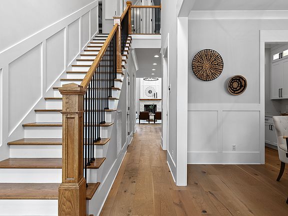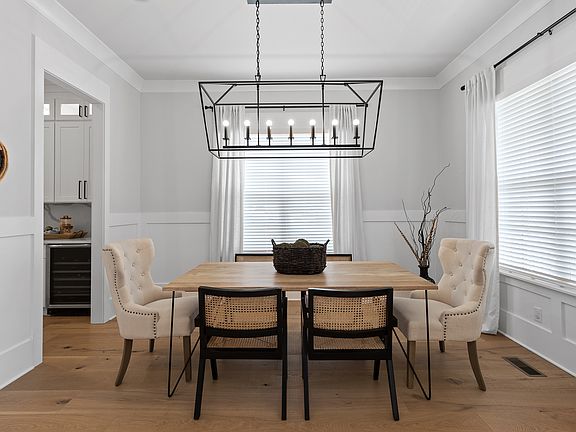 The beautiful white exterior, charming front porch, and impeccable curb appeal set the stage for what awaits inside. Step through the front door into a light-filled dining room, perfect for entertaining. Continue down the hall to the heart of the homean open-concept kitchen and living room designed for modern living.