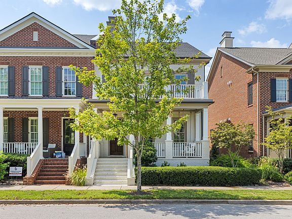 Charming end-unit luxury brownstone! With timeless white painted brick and inviting double porches overlooking lush green space and mature trees. This low maintenance retreat in Westhaven features a primary suite on the main floor with a spa like bath, oversized shower and makeup vanity, custom closet for maximum organization, with half bath for the guests. True lock and leave convenience with hardwood floors throughout.The Cozy living room with fireplace flows seamlessly into the open kitchen, while a flexible main-level space is ideal for a home office or sitting room. Laundry room with built-in cabinetry provides comfort and storage. Upstairs Large bonus room with 3 more bedrooms and 2 full baths. One of the beds has a balcony overlooking the beautiful green space and new trex decking. Enjoy the perfect blend of elegance and convenience in one of Franklin's favorite neighborhoods!