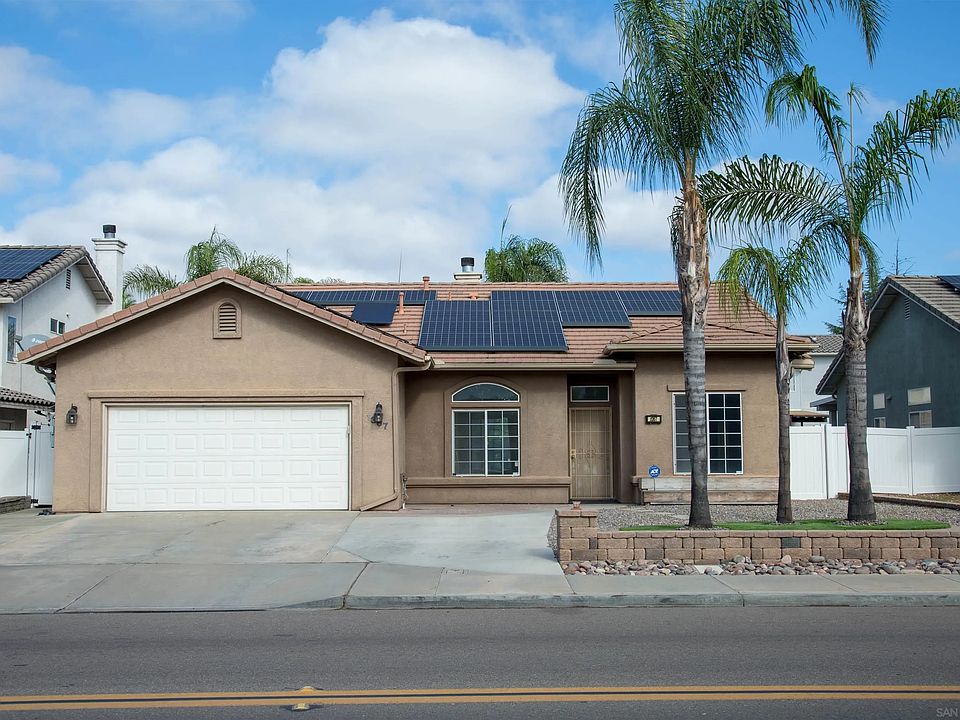 Welcome to this beautifully refreshed 4-bedroom, 2-bath single-family home located in a peaceful Ramona neighborhood. Offering 1,614 sq ft of comfortable living space, this move-in ready property features thoughtful updates and no HOA. Step inside to find new interior paint and brand-new carpet throughout, creating a fresh and inviting atmosphere. The layout includes a separate dining room—ideal for family meals or entertaining—alongside a spacious kitchen with ample cabinet and counter space. The primary suite includes a generous walk-in closet and a private bath, while three additional bedrooms offer flexibility for guests, a home office, or hobbies. Enjoy the outdoors in your private backyard, perfect for relaxing, gardening, or hosting weekend BBQs. Additional highlights include an attached garage and solar, helping support energy efficiency and lower utility bills. Located in the heart of Ramona, this home offers small-town charm with close proximity to schools, parks, shops, and more—without the burden of HOA fees or restrictions. Don’t miss your chance to own this updated and energy-conscious home in a great location.
