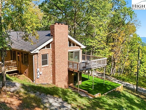 This spacious, recently renovated mountain brick ranch offers the perfect blend of comfort, charm, and convenience just minutes from Boone. Perched beside the top of Rocky Knob Mountain Bike Park and situated in the sought-after Parkway School District, the home enjoys a prime location for outdoor enthusiasts and families alike. Originally built in the 1970s, the home has been thoughtfully updated while preserving its classic character. Inside, soaring vaulted ceilings and an open-concept kitchen and living area create an airy, inviting space filled with natural light. Step out onto the expansive deck to soak in long-range mountain views or unwind on the lower turf patio surrounded by nature. The main level features a spacious primary suite with a laundry nook, a second bedroom, a flexible bonus room, and a charming loft with low ceilings, perfect for children. Downstairs, the finished basement offers additional living space, featuring a large family room, another bonus room, and a convenient half bath. Modern upgrades, including spray foam insulation, replacement windows, a sealed crawlspace, and an efficient heat pump system, ensure year-round comfort and energy savings in this beautifully reimagined mountain retreat.