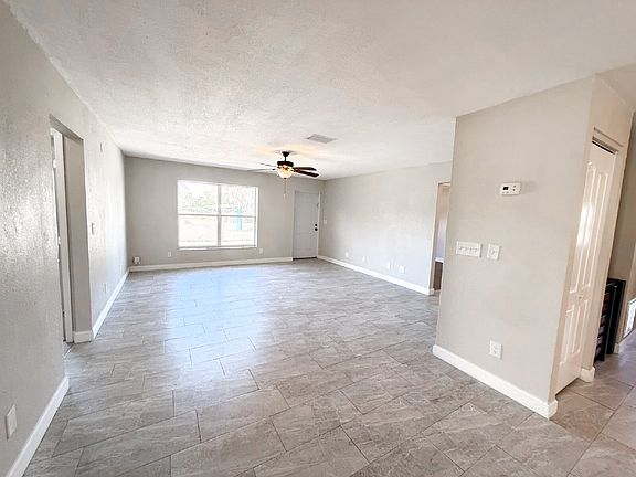 Inside, the home has been tastefully updated with modern tile flooring throughout, a BRIGHT OPEN-CONCEPT LAYOUT, and a REMODELED KITCHEN complete with GRANITE COUNTERTOPS, STAINLESS STEEL APPLIANCES, and WHITE SHAKER CABINETS. Each bathroom features stylish tilework and updated fixtures for a fresh, contemporary feel.