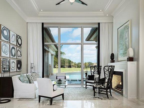 Meticulously appointed on one of the best available home sites in Quail west is Diamond Custom Homes "Basseterre". 4BR+ Study 4 full BA + powder room and pool bath with 5,641 sqft under air and 8,515 sqft under roof. Enjoy lake, golf course, and sunset views on this near acre lot. Enter into the oversized grand parlor with a fireplace overlooking the bubbling fountains and infinity edge custom designed pool and spa. Large great room floor plan with formal dining and wet bar paired with oversized temperature controlled wine room. Gourmet kitchen includes top of the line appliances, superior cabinetry, breakfast bar and family dining. Privately located on the right side of the home with separate pool access is the spacious master suite with sitting area that is complimented with large walk in closets and an elegant bath. On the left side of the home is 3 guest bedrooms with baths ensuite. Laundry is positioned by the door out to the Large motor-court with 4.5 side loading garage spaces.