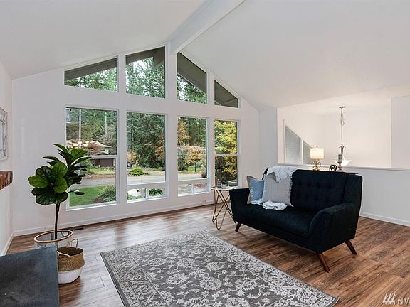 Beautifully remodeled 4 bedroom, 2.75 bath Silverdale home on spacious level lot in Spirit Ridge! Almost everything is NEW! Easy-care laminate floors throughout upper living space, plus new trim & light fixtures throughout. New double pane windows bring great light to cozy living room w/ fireplace & vaulted ceiling. Brand new cabinets, counters and fixtures in kitchen and new vanities and fixtures in bathrooms. Fresh sod in front & greenbelt around .35 acre lot for privacy. 2 car garage!