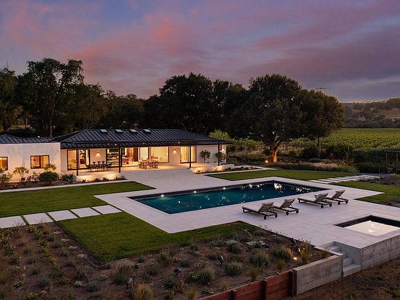 Modern country retreat offers serene lifestyle that beautifully blends metropolitan style w/rural comfort. Turnkey & recently renovated w/ exceptional attention to detail, premium appliances, Monarch plank flooring, beautiful finishes. Single-level residence surrounded by scenic vineyards, graceful oaks, lawns, w/ Maacama Creek frontage. Minimalist aesthetic, expansive windows & doors create seamless indoor-outdoor flow. Clean lines, vaulted ceilings, & open-concept floor plan in main living area offer an airy, modern ambiance & separates bedroom wing from spacious family room w/custom bunks & access to terrace. Additional media room w/custom cabinetry featuring discreet desk workspace & custom library wall. Primary ensuite overlooking pool & views, plus two additional guest BRs. Designed for entertaining, the grounds feature dining terrace w/mechanized trellis overlooking 20'x 45' pool & lush landscaping, 8' x 12' spa, open-air cabana w/motorized wall screens, outdoor kitchen w/island, pizza oven, pool bath & shower, SportMaster tennis court, delightful vegetable garden w/raised beds & fruit trees, & approx 1.5 acre hobby vineyard. Tesla 22.4Kw Solar array + Powerwalls, multiple Tesla EV chargers, generator, 2 wells. A rare sanctuary of modern design & resort style amenities.