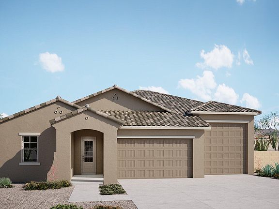 Welcome to the Marigold featuring an RV Garage and a 2-car garage with Spanish elevation. This charming home has bright open Greatroom with spacious dining area & large kitchen. Bedrooms 2 & 3 share a full bath. Club room with Powder room has numerous options to accommodate your everyday needs. Gourmet kitchen boasts gas cooktop, granite counters, center island, tile backsplash & corner walk-in pantry. Owner's suite has oversized walk-in closet, vanity with dual sinks, walk-in shower & handy linen closet. Stop-n-drop area adds ease & convenience. Extra features include tankless water heater, finished garages & carpeted closets. Includes Washer/Dryer, Refrigerator & blinds. Photos are of MODEL HOME.