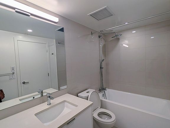 Brand new 1 Bed in Flamingo One, located on the quiet side of the tower in vibrant Surrey City Centre. This spacious layout offers large windows, and a private balcony with stunning mountain and city views. The sleek kitchen features integrated appliances, stone counters, and flat-panel cabinetry perfect for everyday living or entertaining. Enjoy air conditioning, wide plank floors, and generous storage. Steps from Gateway SkyTrain, T&T Supermarket, and minutes to SFU, KPU, and future UBC Surrey Campus. Includes 1 EV-ready parking stall, 1 storage locker, plus access to a fireside lounge, BBQ courtyard, and more.