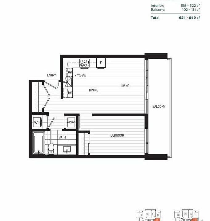 - Total interior livable area: 522 sqft
