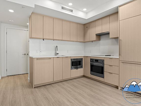 We are offering a brand new 1 bedroom / 1 bathroom condo located on the 7th floor. This east-facing unit includes in-unit laundry, air conditioning, and a heat pump for heating. The kitchen is fully equipped with a fridge, stove, and dishwasher. The home also features a private balcony and 1 parking spot.