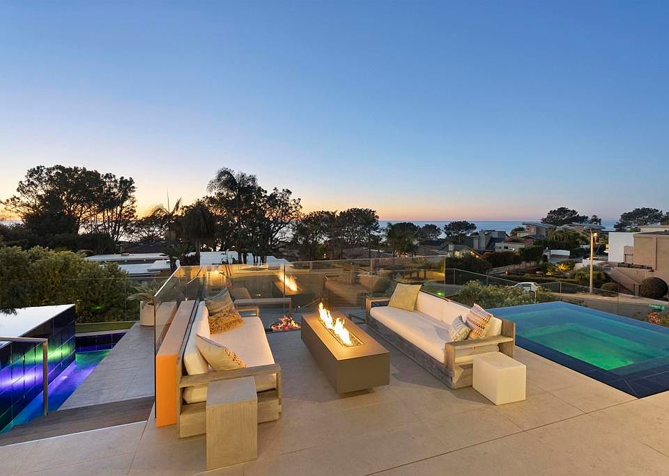 Welcome to 13675 Pine Needles Drive, a newly reimagined and masterfully rebuilt luxury residence in the heart of Del Mar, California—one of Southern California’s most coveted coastal communities. Showcasing breathtaking panoramic ocean views, flawless indoor-outdoor flow, and designer finishes throughout, this showpiece 5BR/4.5BA property sets a new standard for Del Mar luxury real estate. Every detail of this architectural gem has been thoughtfully curated, from the sleek Italian oak floors to the precision shadow-reveal drywall and Starfire glass showers. An abundance of natural light pours into the open-concept living spaces through expansive Fleetwood sliding and pocket doors, offering seamless transitions to the resort-style exterior. The chef’s kitchen is a true focal point, featuring Sub-Zero, Miele, and Bosch appliances, custom cabinetry, quartz countertops, a striking cantilevered island, dual dishwashers, and a built-in coffee station—designed for both elevated entertaining and everyday living. A separate wine center completes the gourmet experience. The luxurious primary suite is your private sanctuary, complete with an ocean-view deck, a spa-style bathroom with a soaking tub and oversized open shower, and a custom walk-in closet. A landscaped rooftop deck offers yet another vantage point to soak in sweeping ocean views and sunsets. Perfect for guests or extended stays, the 555-square-foot guest house above the garage includes a full bath, Ipe wood sundeck, and Fleetwood glass doors that open to postcard-worthy vistas. The outdoor living spaces are equally exceptional. The front yard has been transformed into a private oasis, boasting a vanishing-edge pool, spa, tiered decking, and dramatic fire features. In the rear courtyard, you'll find a built-in BBQ, overhead heaters, a water feature, and a custom 12-person dining table—ideal for alfresco entertaining. Tech-savvy buyers will appreciate the fully integrated Savant smart home system, offering motorized shades, multi-zone audio, security cameras, and whole-house automation. Just minutes from Del Mar’s world-renowned beaches, dining, shopping, and the Del Mar Racetrack, this home delivers the ultimate luxury coastal lifestyle in a rare and private setting.