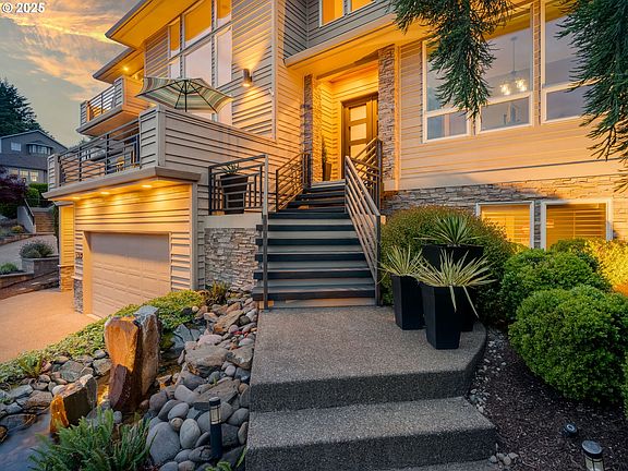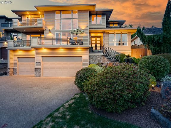 Luxury living with unforgettable views in prestigious Bull Mountain. This executive-style custom home blends refined design, everyday ease, and breathtaking beauty. From the moment you enter through the custom 8-foot iron door, you’re greeted by grand-scale living, soaring ceilings, rich wood tones, and floor-to-ceiling windows that frame phenomenal mountain and territorial views.Designed for elevated living and effortless entertaining, the open-concept great room flows seamlessly into the heart-of-the-home kitchen—featuring gas appliances, a chef’s island with quartz counters, and sunny breakfast dining that opens directly to the view-facing patio. Whether you're hosting a crowd for Thanksgiving in the formal dining room or enjoying a quiet movie night in the media room, this home flexes to fit every moment.The primary suite offers resort-style indulgence with a luxe soaking tub, custom-designed shower, premium fixtures, and soft-close cabinetry. A private patio off the suite provides serene views of Mt. Adams. Upstairs, guests will find two beautifully appointed bedrooms sharing a full bath. The lower level offers a private bedroom and bathroom, media and game room, and abundant storage. Out back, enjoy your own private hillside retreat—terraced patios, lush turf lawns, and an expansive deck make entertaining or escaping effortless. Additional highlights include concrete tiles on the roof, a 3-car garage with 80-amp EV hookup, extensive stonework on the double-sided gas fireplace, large laundry room, and a peaceful main-level office.This rare view parcel offers the ideal blend of privacy, prestige, and practicality. All of this tailor-made for the discerning executive. Located in the Tigard School District and just minutes to shopping, dining, and Portland’s tech corridor.