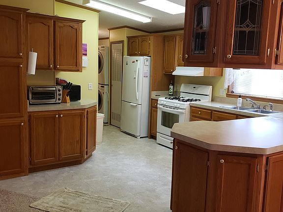 This home has a wonderful open floor plan with 3 bedrooms, large closets, 2 full baths, Kitchen has lots of counter space and many cabinets, plus a pantry cabinet. Kitchen appliances and washer and dryer included. Front Yard on one street, back yard on the next street. Oversized 2 stall attached garage. Back Yard deck, Raised garden beds, Fire Pit area. This home is in Cedarfield 55+ Community. Don't wait, call today.
