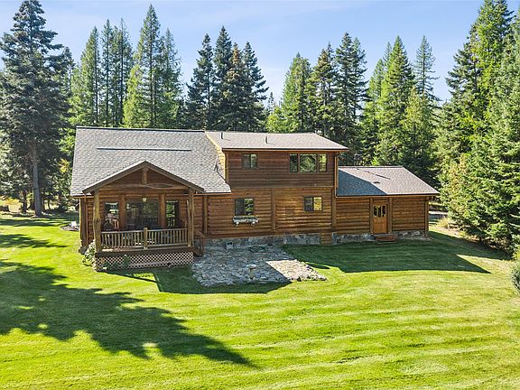 Discover true Montana craftsmanship in this authentic log home on 2.2 private acres with captivating Swan Range views. Built by Nordique Log Homes, the residence highlights quality details such as vertical log corners for lasting stability, antler chandeliers, & hand-selected timbers that create warmth and character throughout. The main level features engineered hardwood floors, granite counters, & an open layout centered around a striking stone gas fireplace. The kitchen is updated with an induction range and stainless appliances. Two bedrooms share a full bathroom with a tub/shower combo & double vanity. A covered porch extends the living space outdoors, overlooking the backyard. Upstairs, the spacious primary suite offers a remodeled bath with double sinks and a walk-in tiled shower, plus a large bedroom with potential for two closets. Upgrades include a new roof new well pump, gutters, finished 2-car garage, paved driveway, Vivant security system, & a whole-house backup generator. This is a true log home retreat—balancing rustic authenticity with modern comfort.