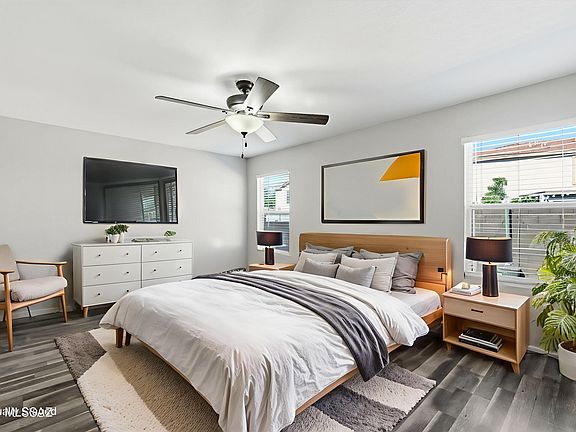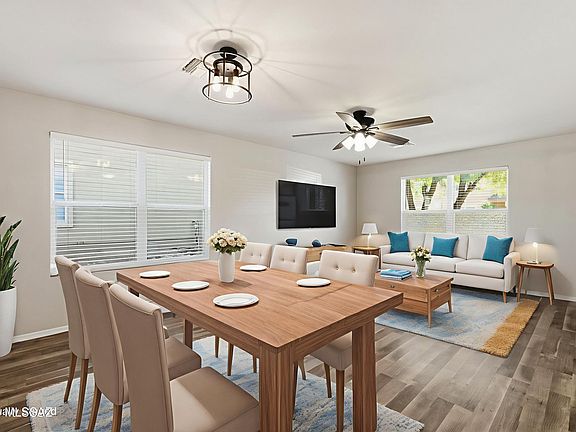 This beautifully maintained home features an open floorplan with 3 bedrooms, 2 updated bathrooms, plus a den-perfect for an office or guest room! Enjoy energy efficiency with fully PAID OFF solar system and modern finishes throughout, including LVP flooring and fresh interior paint. The spacious kitchen offers stainless appliances, and ample counter space for cooking and entertaining. The primary suite includes a stunning tiled shower and soaking tub, creating a true retreat. The spacious backyard includes a relaxing covered patio. Located in the award-winning Vail School District, this home checks all the boxes for comfort, convenience and affordability! Come make this house, your new home!