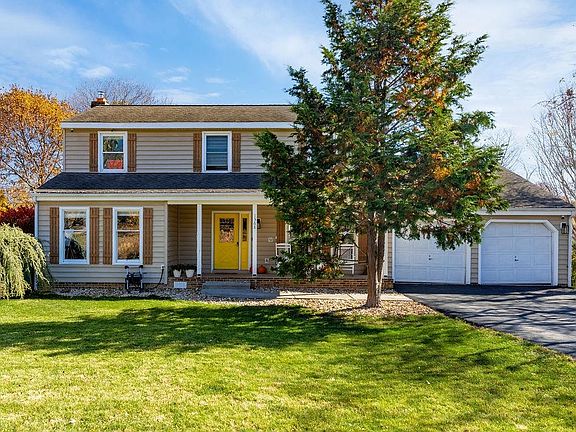 Beautifully updated 4-bedroom, 3.5-bath Colonial in the highly sought-after Lakewood Estates! This spacious home offers hardwood and ceramic tile floors, a large eat-in kitchen with quartz countertops, and a cozy family room with a wood-burning fireplace and built-in bookcases all on the 1st floor. Step outside to enjoy multiple outdoor living spaces, including 2 open decks and a covered deck/solarium, all overlooking the level, Newly fenced(2025) backyard, with mature trees, garden space, a rainwater collection system, and a custom play rig. Upstairs boasts a spacious primary suite featuring a luxurious attached bath with a giant spa tub, a separate standing shower and heated tile floors for comfort. 2 additional bedrooms and a full hallway bath round out the 2nd floor. The finished walkout basement includes a rec room with bar area and fireplace, fourth bedroom, full bath, and office area with easy outdoor access. Enjoy a two-car main-level garage plus an additional lower-level garage/workshop. Recent upgrades include:new HVAC system, A full security system w/ touchless lock entry, & all new toilets(2025). This move-in-ready home combines comfort, functionality, and modern updates in a peaceful neighborhood setting.