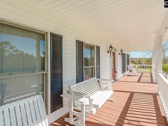 This custom-built home is situated on 36.60 acres of rolling land. The home sits on the hilltop on the western boundary of the tract, which includes approximately 20 acres of established Coastal Bermuda hay fields. There is a small, spring fed waterhole on the property that was previously used for livestock. The Eastern boundary is a creek, and there is approximately 12 acres of bottom land between the hay fields and the creek. The home features hardwood flooring in the living areas, dining room, and kitchen. The foyer and formal areas are separated from the family room by french doors. The huge, country kitchen features stain grade cabinetry, a large center island, electric range/oven, gas cooktop, and wall oven, providing ample cooking space for canning or catering to a large gathering of friends and family. Both downstairs bedrooms feature on-suite full bathrooms and walk-in closets. The upstairs bedroom is large enough for sleeping and lounging area, and also features an on-suite full bathroom, as well as access to the walk-in attic/storage space. Outside, there is a large covered front porch, a separate covered porch accessible via the dining room and Master Suite, and a large rear deck. There is also a detached house used as a beauty salon in the backyard with an open floor plan, walk-in closet, and half-bathroom. Several Storage buildings and sheds are situated behind the cottage, and there is built-in storage under the home, as well!