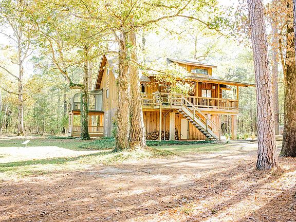 Wow, this secluded retreat is a rare find that has it all! Enjoy your privacy as you relax on one of the covered porches or tiered garden deck, or explore your own personal forest trail. If fishing is your passion, you can cast a line in your own pond, stocked with bass and bream, or head to the nearby boat slip at Loch Lomond Landing, just under a mile away. For hunters, the 5.3 acres offer the perfect Sportsman’s Paradise, with abundant deer and natural beauty. The ground floor features a 23' x 36' 2-car garage with plenty of room for a workshop or storing all your toys. Upstairs, a spacious covered porch offers an ideal spot for entertaining or just watching the deer and other wildlife on your wooded property. Inside, you'll discover a move-in ready home with beautiful wood floors, vaulted ceilings, an abundance of natural light, and neutral paint tones throughout. The kitchen, bathrooms, and laundry room feature custom cabinetry, and a large walk-in pantry provides plenty of storage space. A cozy wood stove in the living room adds warmth and charm, perfect for chilly winter evenings. The primary bathroom is a true retreat, highlighted by a custom walk-in shower with travertine tile, dual shower heads, and a skylight, creating the perfect oasis to begin your day. The roof and skylights were replaced in 2023, and the septic system was updated in 2020. The A/C and water heater are also newer. The inside of the house is updated, with new carpet installed in 2022 and a new stainless stove and dishwasher in 2021. The stainless French door refrigerator in the kitchen and the washer and dryer all stay.