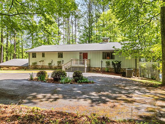 As you enter the lavish, private gate and wind through the beautiful 3.5 acre wooded lot you'll be captivated by the serene beauty and stunning views this property offers. The driveway extends the entire property, and loops around the home for easy access to all areas of the lot.