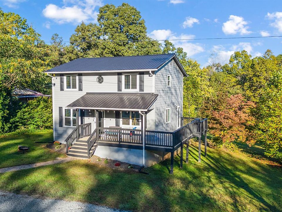 Step inside this beautifully updated farmhouse retreat on one peaceful acre just minutes from Altavista. Built in 1993 and thoughtfully renovated, this 3-bedroom, 2.5-bath home offers charm and modern comfort with 1,560 sq ft of living space. The metal roof and wrap-around porch welcome you to relax and stay awhile. Inside, enjoy an open living and dining area filled with natural light, an updated kitchen with stainless appliances, and a main-level bonus room with half bath that's perfect for an office or guest space. Upstairs, the primary suite includes a private bath, and two additional bedrooms share a hall bath. Step onto the rear deck to take in the peaceful country views. Conveniently located close to shopping, dining, and schools, this home blends country tranquility with everyday convenience. Updates Summer 2025: fresh gravel driveway, painted deck, refreshed storage shed. Like-new zero turn mower conveys, as well.