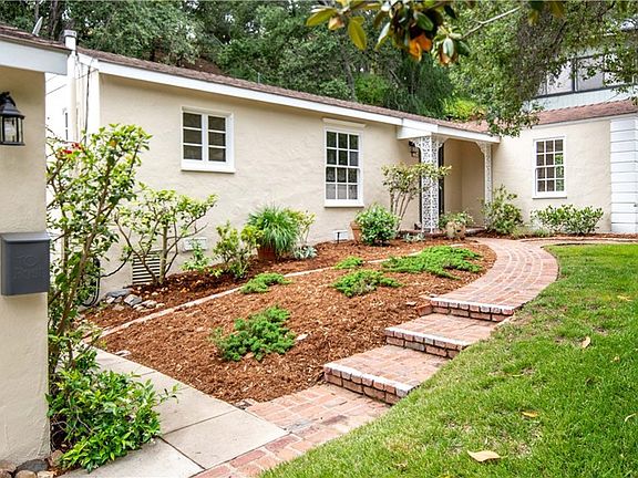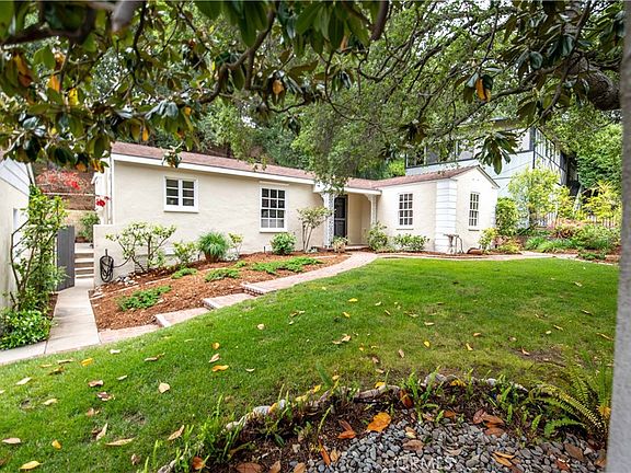 This charming and cozy two-bedroom, one and a half bath home offer a warm and inviting atmosphere, beautiful wood floors, and a classic design. French doors frame the classic fireplace and open to the step down sun room which brings the square footage of the house up to 1208 sq ft. This room makes an ideal office, den or reading room. The vintage kitchen brings a nostalgic charm and timeless appeal to this lovely home. The brick courtyard offers a tranquil and secluded outdoor space for relaxation and enjoyment. A path across the back hillside leads to a flat area with beautiful views. This lovely Verdugo Woodlands home is an outstanding choice for those seeking a comfortable and welcoming place to call home.