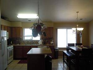 Beautifully maintained DR Horton single story in Cabezon. Owners have made nice improvements to this home including laminate wood floors, tile backsplash, new fixtures, and custom paint throughout. Popular 4 bedroom model with open kitchen and living room, and separate master suite. Nice size master bath with garden tub and walk-in closet. Relax in your low maintenance backyard with covered patio, and views of the Sandias too. All appliances stay. This home shows beautifully all the time, you don't want to miss this one. Come see it today.