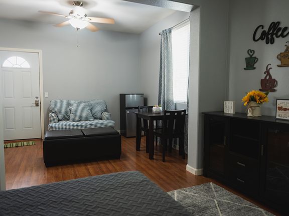 Semi furnished studio with private entrance. Newly painted , very cozy and clean. Located near freeways and restaurants and shopping . Very nice neighborhood . Close to Palomar Hospital, Kaiser Hospital and San Marcos University and Palomar College. Landlord lives on site. It does not have a kitchen but has refrigerator and microwave . Owner pays for utilities like water, electricity, wifi. No smoking ,no pets allowed. One year lease is required. Tenant responsible for keeping studio clean and well maintained. No loud noise after 10:00pm. Tenant is the only person allowed to live in the studio.
