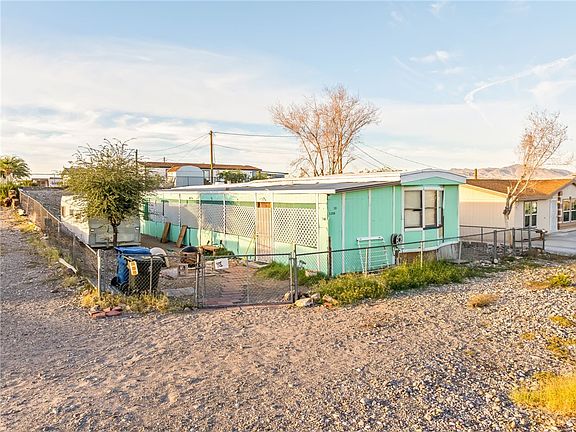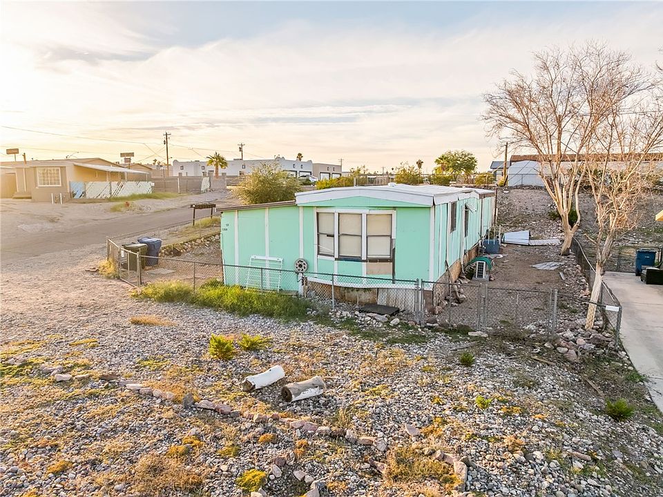 Great location just 2 blocks off Highway 95 on a corner lot in beautiful Bullhead City. Spacious front yard with parking, fenced-in area around the home, and a 2 bed 2 bath home with closed-in patio & storage. Needs TLC but in livable condition. Plenty of room to store your belongings! Use this home to enjoy river life, fix up for yourself or a rental, or whatever your heart wishes. No HOA - owned land!