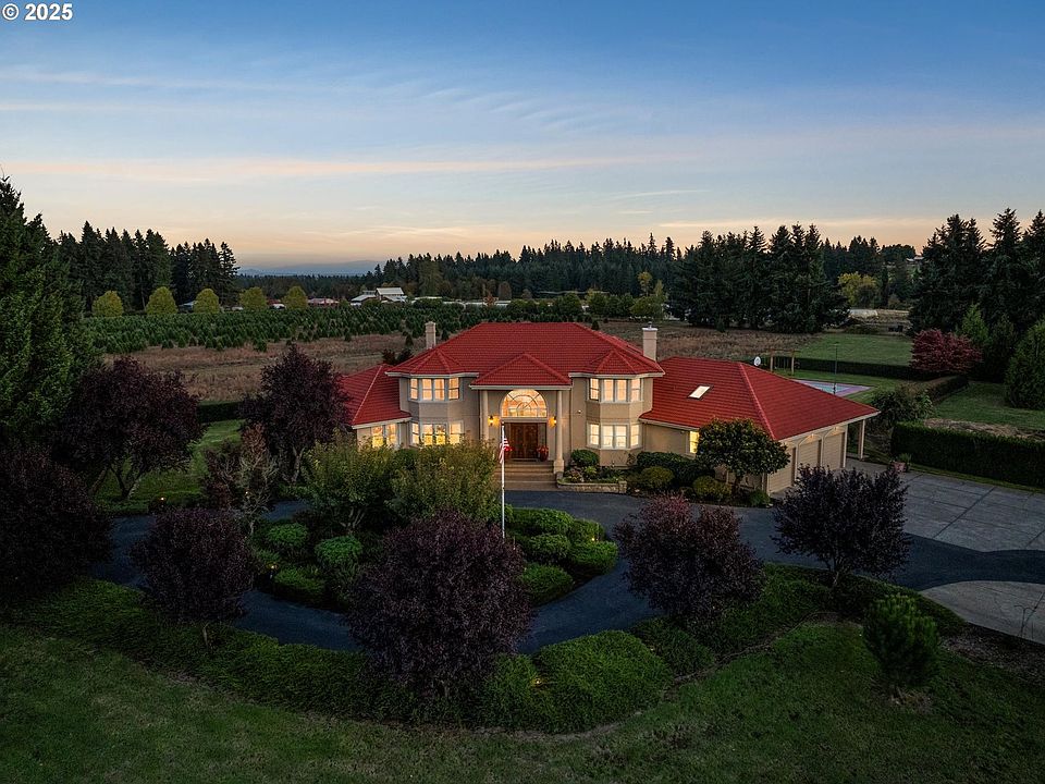 Welcome to this exceptional Sherwood estate — a rare opportunity to own over sixteen private acres in Oregon’s beautiful wine country. This impressive six-bedroom, five-bathroom residence combines luxury and functionality. From the moment you arrive, you’ll notice the attention to detail and the sense of privacy that make this property truly stand out. Inside, a flowing floor plan showcases vaulted ceilings, rich finishes, and expansive windows that fill the home with natural light. The gourmet kitchen features high-end appliances, a large island, and seamless flow into the spacious great room — perfect for entertaining or relaxing with family. The primary suite offers a private retreat with a spa-inspired bath, and stunning views of the surrounding landscape. Five additional bedrooms provide flexibility for guests, a second home office, or multi-generational living. Step outside to enjoy true resort-style amenities — including a sparkling pool, sport court, and expansive patios. There’s room for recreation, gardening, animals and all your toys. So many ways to enjoying the peace and quiet of country living. This is more than a home — it’s a lifestyle. Experience it all just minutes from the charming Old Town Sherwood, top-rated schools and easy commutes. Welcome to your next chapter!