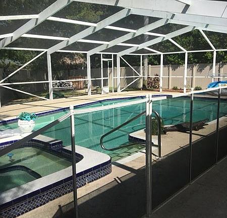 Beautiful 3bed/2bath/2 car garage heated spa and pool home!! The owner has installed new A/C, new laminate wood flooring, new PVC vinyl fence around the entire backyard. Home has matching light corian counters and wood cabinets in kitchen and bathrooms, updated fixtures and fans. Updated fireplace wood burning or owner has converted to electric for easy use. Living space is very open with kitchen, dining, and living room overlooking the beautiful pool - lots of natural light and vaulted ceilings. 2 Large guest rooms with laminate flooring and a guest bath. Master also has laminate flooring, large closet, private bath, and slider out to the pool. The backyard is truly an oasis with a huge heated pool and spa, large lanai, covered patio, fenced yard, and tiki hut! Pool comes with child saftey gate. This home boasts the opportunity to enjoy the outdoor FL life style. Walking distance to Seminole schools, and less than 2miles to GORGEOUS sandy beaches!