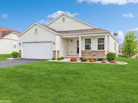 Discover the easy living in this meticulously maintained, open-concept ranch home boasting a lookout basement! Nestled on a peaceful cul-de-sac with pond views (perfect for fishing), this property shows pride of ownership from the moment you arrive.Step inside to a spacious great room and formal dining area, seamlessly blending together for effortless entertaining. The heart of the home, the open-concept kitchen, features stainless steel appliances, a large island with breakfast bar, with Maple Recessed Cabinets and Recessed Lighting. Glass sliding doors off the dinette lead to a tranquil wood deck, offering the perfect spot to unwind while enjoying the serene pond vistas.Convenience is key with a main floor laundry room and a generously sized master suite complete with a walk-in closet. An additional bedroom and full bath provide ample space for guests or family members, while a versatile room awaits your personal touch--ideal for a den, office, or whatever your heart desires.Freshly painted throughout, Ceramic Flooring in both Bathrooms, Hardwood Flooring in Foyer, Kitchen, Breakfast Room. Deep unfinished daylight basement, providing endless possibilities for future expansion or recreation space. Outside, the professionally landscaped yard boasts an in-ground sprinkler system, ensuring easy maintenance year-round.Plus, with HOA maintenance covering weekly lawn mowing, bi-annual fertilizer treatments, bush care, and snow removal, you'll have more time to enjoy the nearby parks and walking trails within walk-in distance. Experience carefree living at its finest!