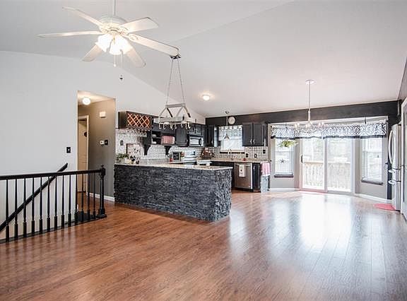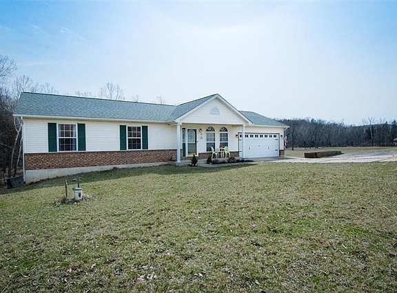 Lovely 4 bed 2.5 bath ranch style home situated on 6 beautiful acres just waiting for you! The open floor plan provides a great amount of space for your family to enjoy. The vaulted great room opens to the expansive breakfast room and kitchen complete with gorgeous granite counter tops, upgraded stainless steel appliances, numerous cabinets, walk in pantry, plus a composite deep well sink with an updated faucet. The Master bedroom suite offers two closets, a full bath and a large bay window overlooking the beautiful acreage. Two additional bedrooms, a guest bath plus the laundry area complete this level nicely. The finished walk out lower level features the fourth bedroom, a half bath and a spacious family room! The newer architectural shingled roof is a bonus as well. Enjoying the outdoors is not a problem here! Plentiful wildlife, black walnut trees, grapes, blackberries and more spanning throughout the acreage. AHS Warranty is provided for you! Home is eligible for USDA Financing!