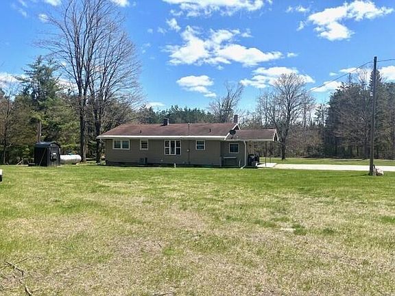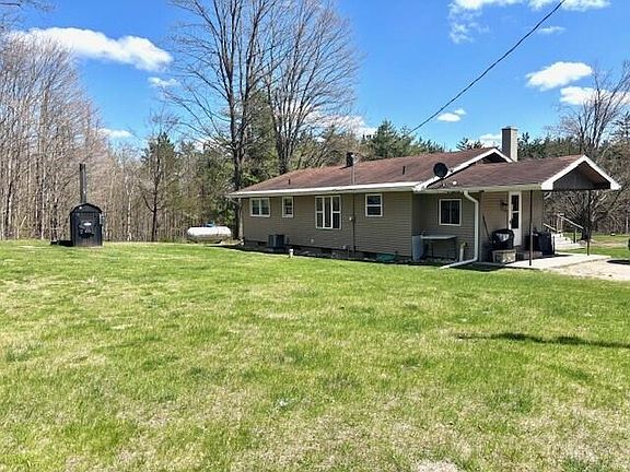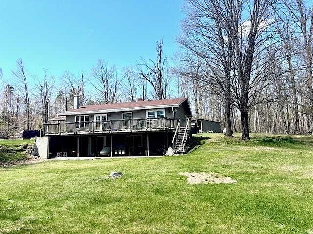 This beautiful home offers peace and quiet. Tucked away on 4 acres at the end of a county maintained road. 4.3 miles to town. This home has had many upgrades over the past 10 years. Kitchen: granite counters, stainless steel appliances, tile floor, new well and pump, outdoor wood boiler, carpet, tile, electrical, insulation, windows and more. Plenty of room for a garden area with a cellar set up in the walkout basement for canned goods. There is a 12'x24' with loft Amish built shed with wood stove, electric and lights and wall sockets. An additional shed was used a chicken coop but could be additional storage or the Seller will remove it with sale. The price of the home is reflective of the deck needing major repair or replaced.