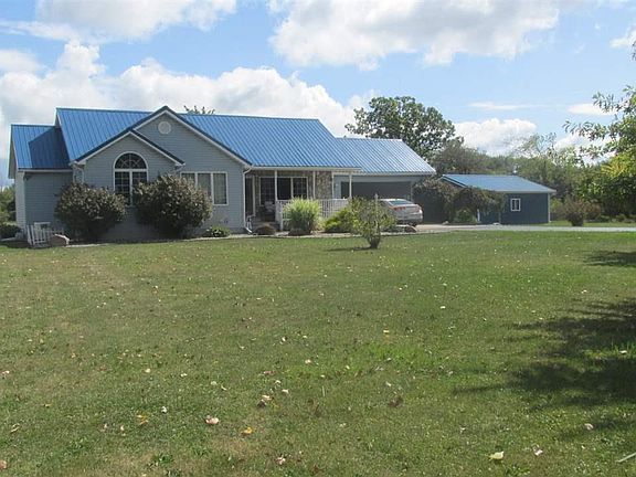 Beautiful Country setting on 11 acres, 1340 sq ft ranch home. 3 Bedrooms, 2 full baths, master bedroom with private bath and walk in closet. Appliances to stay, gas fireplace, central air, full finished basement, full house Generac Generator, 2 car attached garage, paved drive, pole barn 24x40 with 2= 12x40 lean too, shed 8x12 back of pond.