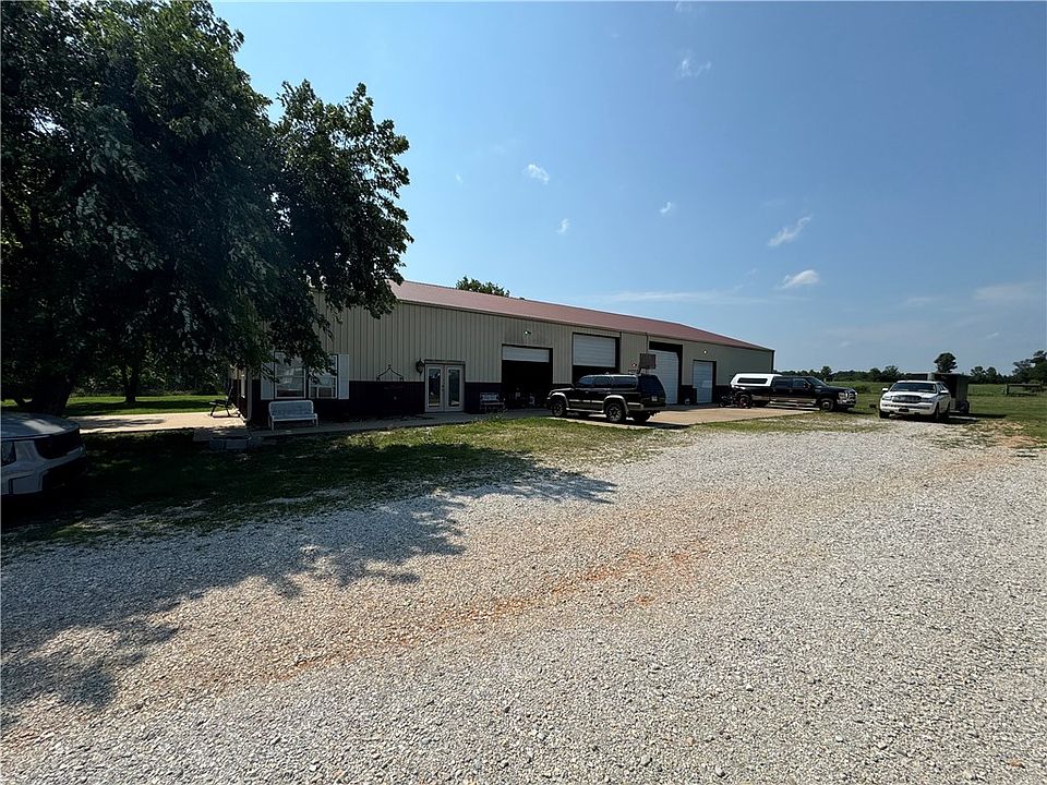 This property features a 60' x 120' metal shop building with 2,200 SF of living quarters. The living quarters features 2 bedrooms and 3 bathrooms with a large open-concept kitchen/living area. There is a partially constructed second living quarters on the opposite side of the shop building. The shop building features 4 large bay doors with ample room for storage or your business! This barn-dominium sits on 20 acres minutes from Pea Ridge!
