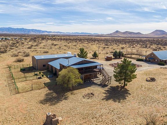 Unique wood interior ranch home on 38 fenced acres. Main home has three bedrooms (one currently used as office), two baths, two bedrooms on ground floor, two lofts with a large great room, pellet stove, river rock wall and custom built wine bar. New metal roof and energy saving foam insulation installed in 2014. Large barn with 3 stalls that exit to 3 fenced corrals, with work shop and storage room. Two one bedroom furnished apartments with their own separate entrances and outdoor patios. Wood fired pizza oven and rock fire ring are special amenities for a wonderful weekend with friends and family. This property has all of the ingredients for a large family compound, a secluded B&B with ATV paths and miles of horseback riding trails that can access the Chiricahua National Forest. This property has several of the attributes for a commercial vineyard and winery, a pecan orchard or other possible crops. The soil quality is wonderful. Just add water and anything grows. A 30' by 60', insulated and heated garage with 30 amp power (could be increased to 50 amp) that can house a 45' RV or 6 vehicles or host a large party with room for a band and over 60 guests. (We've done it.. several times.) This property is a must see that is clearly a one of a kind chance to experience the old west in style. Additional 40 acre adjoining parcel to be sold separately. Two members of the owner LLC are licensed Arizona real estate agents.