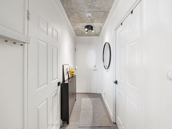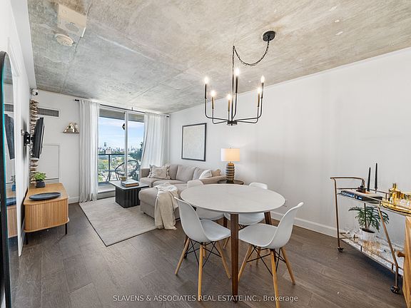 Welcome to 1369 Bloor St W - Located in the Heart of Bloor West Village! Featuring an updated 1-bedroom condo with East-facing balcony with views of Toronto skyline and CN tower, large windows, and a highly functional layout with a generous sized kitchen and separate dining area - ideal for both daily living and entertaining. The chef-inspired kitchen includes quartz countertops, stainless steel appliances, herringbone backsplash, under-cabinet lighting, floating walnut shelves, and modern fixtures. Enjoy engineered hardwood floors and smooth concrete ceilings throughout for a sleek, contemporary feel. Set in a building with excellent amenities, including an outdoor pool - perfect for cooling off in the summer months or entertaining! Plus a gym, party room, and security system. Located just steps from the Sterling Road arts and innovation district - home to the Museum of Contemporary Art (MOCA), the Drake Commissary, Henderson Brewery, and a growing mix of creative studios, tech offices, and cafes. The surrounding Junction Triangle is one of Toronto's fastest-evolving neighbourhoods, combining industrial charm with vibrant community energy. Nature lovers and active commuters will appreciate being close to the West Toronto Rail path, a multi-use trail perfect for walking, jogging, and cycling, offering a peaceful, car-free connection through the city surrounded by trees, murals, and green space. Additionally, Transit couldn't be easier with the Bloor subway line and UP Express just minutes away - downtown in 10 minutes, Pearson Airport in 20. A perfect opportunity to live in style, with space, convenience, and culture right at your doorstep.