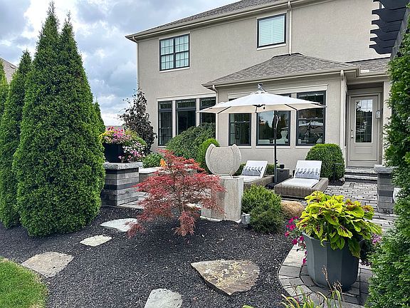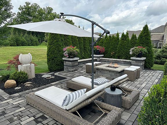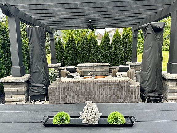 Custom built Romanelli and Hughes home in desirable Trails End neighborhood. Designer finishes throughout include wood floors entire first floor and Master Bedroom, Custom wood trim and staircase. Hearth room and family room with gas fireplaces. Large private patio with gas fire pit, gas fire wall, built in gas grill, and oval ceramic grill. Unfinished basement is plumbed with egress window and ready to finish for lifestyle.