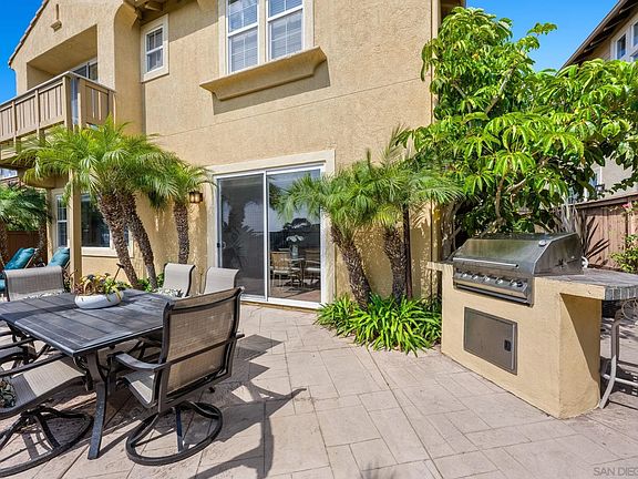 Think of this: while you're enjoying the spa or grilling those vegetables and steaks on the buillt-in BBQ, you'll be able to enjoy the sunset and ocean view or lush open spaces. And very few steps to the refrigerator. Perfect setting for your next gathering. EZ flow from southwest--facing patio into family room/kitchen combo with its fireplace and overlooks canyon and ocean/sunset view. Location can't be beat: quiet cul de sac overlooking portion of historic Encinitas Ranch. Just a stroll to new Fox Point Community with farm-to-table cuisine, family entertainment, vegetable gardens. Large primary bedroom and resort-like bath enjoy ocean and sunset views too. Well built and maintained open plan with large living/dining room combination. Lush and mature landscaping adds to the ease of living here. Trailhead to miles of winding trails just a few houses away. Three bedrooms now but possibility that office can be repurposed as ensuite bedroom.