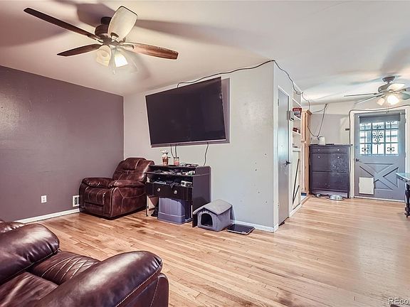 Welcome to this charming 4 bedroom, 2 bathroom ranch home located in the vibrant Mar Lee neighborhood of Denver. Ideal for those who need ample space for vehicles and hobbies, this property features an oversized 2-car garage, additional parking for an RV, and extra room for all your toys—all without the restrictions of an HOA! As you step through the front door, you're greeted by inviting warm colors and a comfortable atmosphere, with hardwood floors spreading across the main level. The layout includes a cozy family room, a practical kitchen, a dining area perfect for mealtime gatherings, and three well-appointed bedrooms accompanied by a full bath. This home is perfect for entertaining; the layout flows effortlessly out to a spacious covered back patio where you can enjoy BBQs and outdoor gatherings no matter the weather. The patio overlooks a peaceful backyard, providing a great space for relaxation and leisure. The versatility of this home extends to the fully finished basement, which adds significant extra living space. Here, you'll find an additional non-conforming bedroom, a bathroom, flexible space for any number of activities, and a dedicated laundry room. This lower level is perfect for guests, a home office, or simply as extra space to spread out and enjoy. Located in a friendly community with easy access to local amenities, this home combines comfort and convenience in a package that's hard to beat. Whether you’re hosting friends on the patio, tinkering in the oversized garage, or enjoying the local scene, this Mar Lee ranch home offers a unique blend of style, space, and functionality.