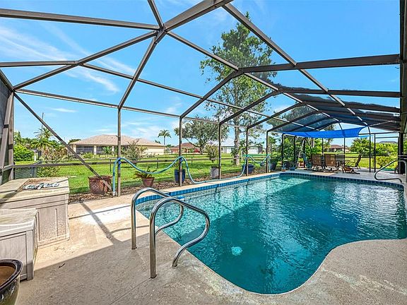 Beautiful 3-Bed, 2-Bath Pool Home in Deep Creek, Florida – Packed with Upgrades! This incredible 3-bedroom, 2-bath, 2-car garage home with a heated inground pool is full of charm and modern updates. Located in Section 23 of Deep Creek, this home is tucked away at the end of a peaceful cul-de-sac, offering a quiet setting and extra privacy. With over 1,800 square feet of living space, this house has room to relax, entertain, and enjoy life in the sunshine. As you pull up, you’ll immediately notice the professional landscaping and curb appeal. Step inside through the screened front porch with tiled flooring and you're greeted by an open floor plan with smooth flow and plenty of natural light. Multiple sliding glass doors bring you straight out to the large pool deck, where the heated, resurfaced 6-foot-deep pool waits for you to jump in. There’s even an outdoor shower and a solar cover included. Inside, the eat-in island kitchen is a dream. It features quartz countertops, 42-inch wood cabinets, pull-out drawers, a tiled backsplash, a pantry, and stainless steel appliances. The kitchen also has a pass-through window to the pool area and another set of sliding doors off the dinette, making entertaining easy. The dining room is spacious enough for a large dining set and has a big window that fills the space with light. The massive 21x13 primary bedroom comes with a walk-in closet, ceiling fan, and private sliding doors to the pool. The updated primary bathroom features dual sinks, Italian marble countertops, and a modern walk-in shower. The two additional bedrooms also have ceiling fans and roomy built-in closets. The guest bath has a tiled tub/shower combo and updated Italian marble vanity. The laundry room includes a washer, dryer, and a stainless steel sink with a pull-out faucet. Additional upgrades include: COREtec luxury vinyl plank flooring throughout most of the home, New roof and A/C (2020), New water heater (2022), Hurricane impact front and garage doors, New A/C ductwork, upgraded electric panel & more! This home is also on public utilities and just minutes from schools, shopping, and restaurants! This amazing home definitely checks all the boxes! Don’t miss your chance to start living the Florida lifestyle—schedule your private tour today!